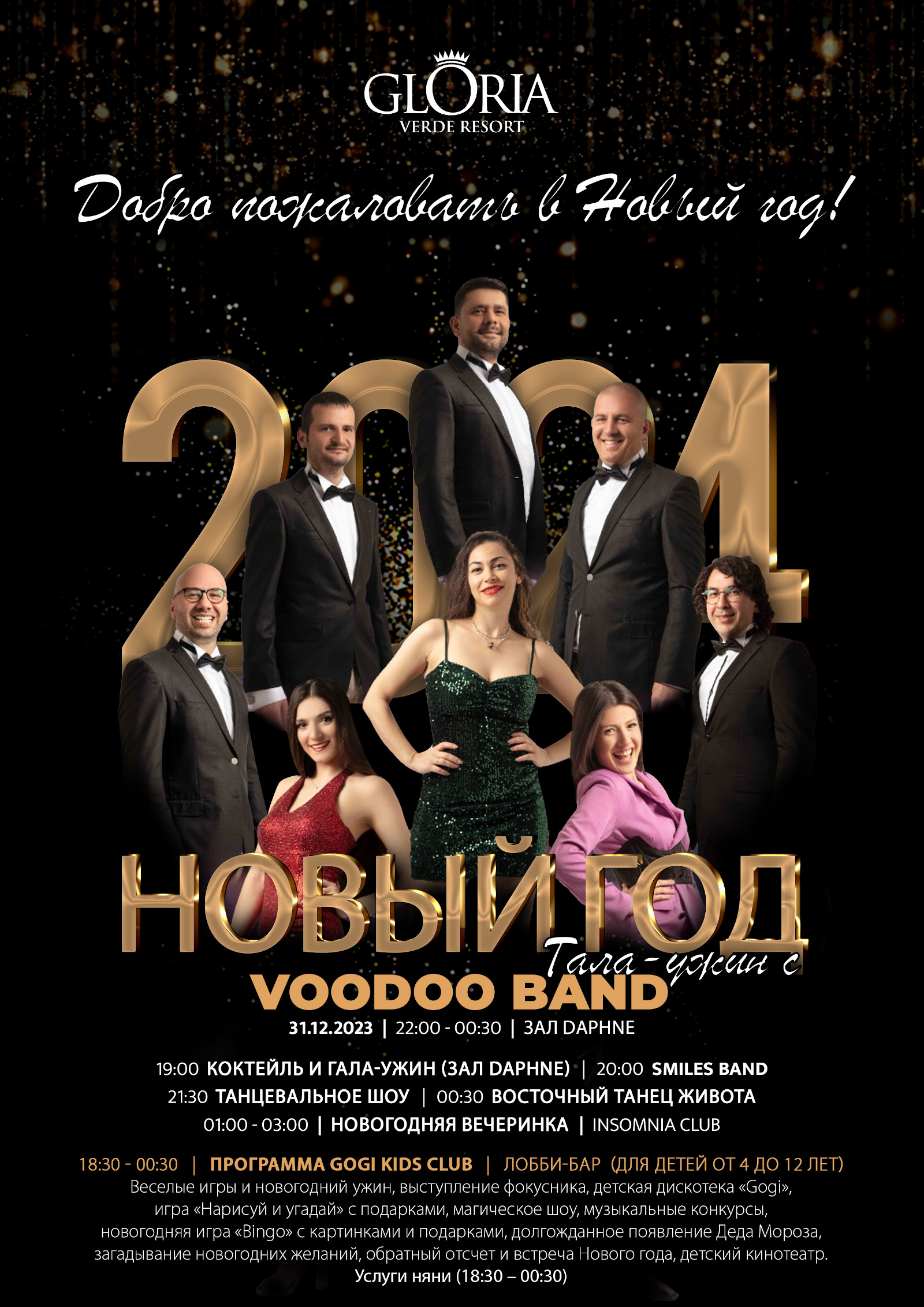 Новогодний гала-ужин, шоу танца живота, обратный отсчет до наступления