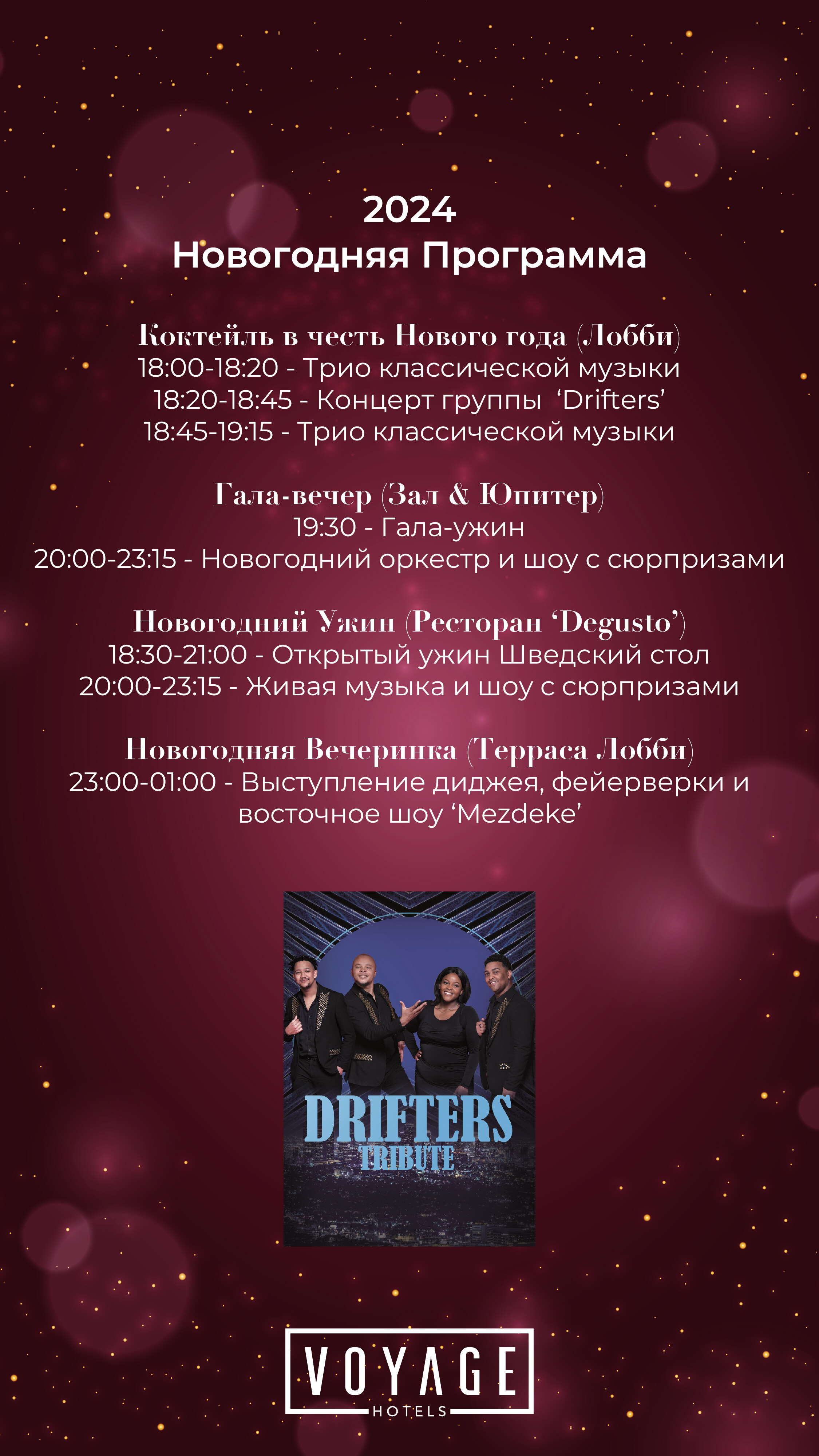 живая музыка в лобби баре, новогодняя лотерея,