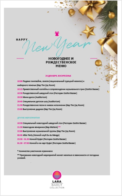 Турция готова к приему гостей на Новогодние праздники, отели предлагают множество разнообразных праздничных программ.
